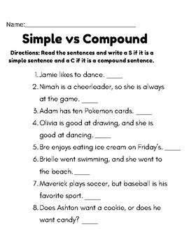 simple vs compound sentences. There are any references about simple vs compound sentences in here. you can look below.